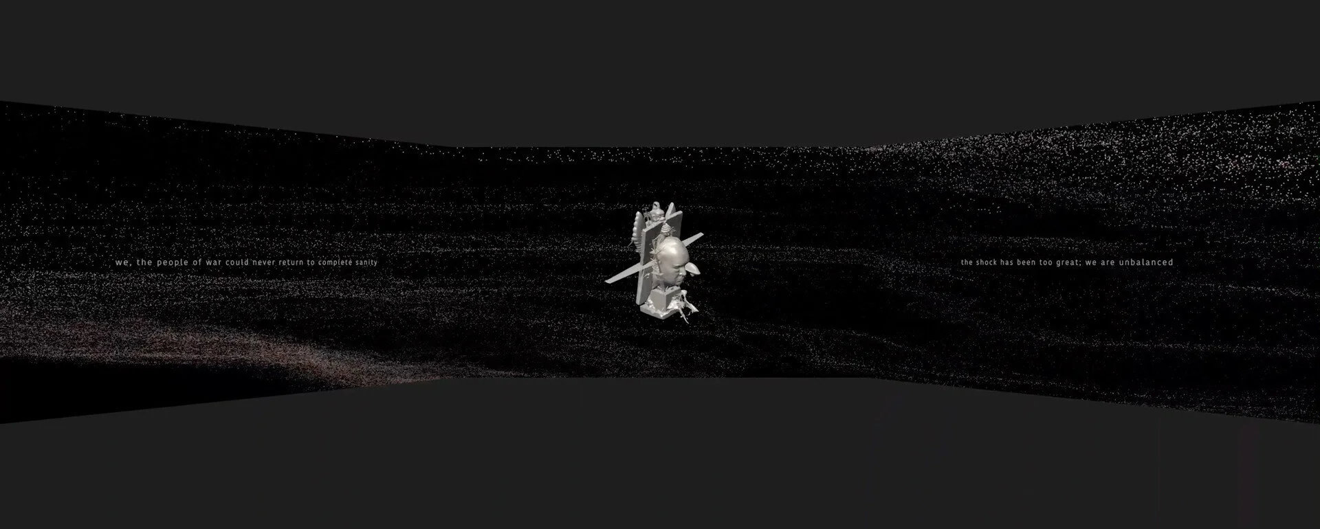 B2 Center for Media Arts and PerformanceA three-channel synchronized video and sound installation sourced from a found footage video streamed online from a location — (37.084833, 44.153222) — in the Middle East.